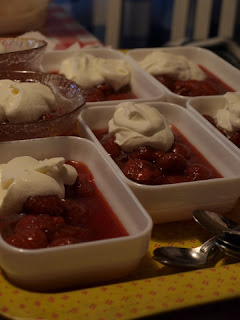 Eilen illalla teki mieli tehä jotain jälkkäriäkin kun oli palkkapäiväkin ja kaikkee. Ihan liian harvoin tulee tehtyä arkena jälkiruokia, vaikka tämäkin valmistui todella pienellä vaivalla. Muutenkin kyllä energiaa tuntuu riittävän enemmän jälkiruoan kuin varsinaisen iltamätön valmistukseen. Eilen tuli tehtyä muuten hiton hyvää ruokaa, käytin Lapin rieskasia pizzapohjina ja päälle tomaattikastiketta, punasipulia ja mozzarellaa, uuniin ja lopuksi päälle ilmakuivattua kinkkua ja rucolaa, namsnams.
