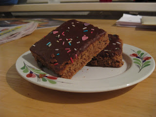 Resepti mutakakulle löytyi Fazerin leivontasuklaapaketin kyljestä. Työkaverin kanssa pohdittiin, että suklaata ei selvästikään ole tarpeeksi, joten heitettiin sekaan vielä noin desin verran kaakaojauhetta. Ohjeesta tulee kakkuvuoallinen. Mie kerroin ohjeen 2,5 kertaiseksi, jolloin se oli passeli pellille ja kauppaan. Aina semmoset reseptit on kivoja mihin menee aina paketillinen vaikka munia ja margariinia :)