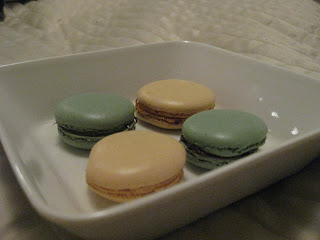 Kolme kertaa oon noita nyt tehnyt ja joka kerta ne on onnistuneet ainakin jotenkin :) Ensimmäisellä kerralla eka satsi oli ihan lättänöitä, mutta toinen pellillinen onnistui kuvan osoittamalla tavalla. Toisella kerralla taikinasta tuli niin jäykkää, että macaronseista ei tullut ihan niin sileitä, mutta maku oli silloinkin kohdallaan. Nyt kolmannella kerralla kaikki oli kohdallaan. Eroiksi olen keksinyt ainoastaan elintarvikevärin sekoituksen eli oliko sekoitettu väriä ekalla kerralla oikea määrä, joten taikinaa ei tarvinnut useaan kertaan vatkailla (jolloin se jäi liian jäykäksi), vai laitoinko väriä liiankin niukasti ja sitä sai lisäillä useaan otteeseen (jolloin taikinasta tuli liian löysää). Jauhemaisia elintarvikevärejä ostin apteekista.