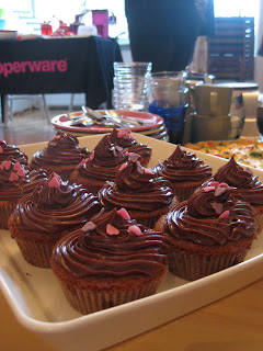 Muuten kakun tein Ulla Svenskin Unelmakakut-kirjan vinkkien mukaan. Olin saanut edelliseltä työpaikaltani läskiäislahjaksi lahjakortin Kokkipuotiin, josta kävin ostamassa isomman kakkuvuoan ja silikonisen minimuffinssivuoan. Molemmat pääsivät käyttöön kun tein kakun seuraksi pikkuruisia suklaa-cupcakeseja M-koristeilla. Kakusta riitti hyvin reilulle 20 hengelle kun tarjolla oli myös muuta makeaa.